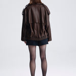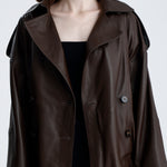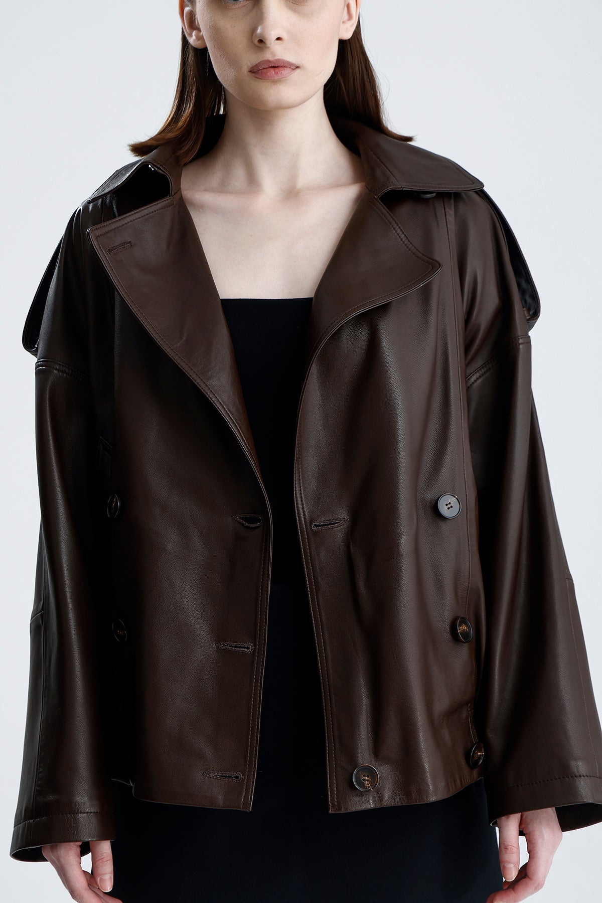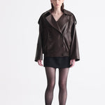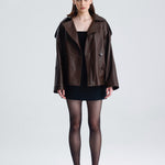 Drew is a sleek biker style jacket in terra flame lamb leather. Its cropped fit and fiery tone makes it a statement essential designed for women who like their classics with a modern edge.