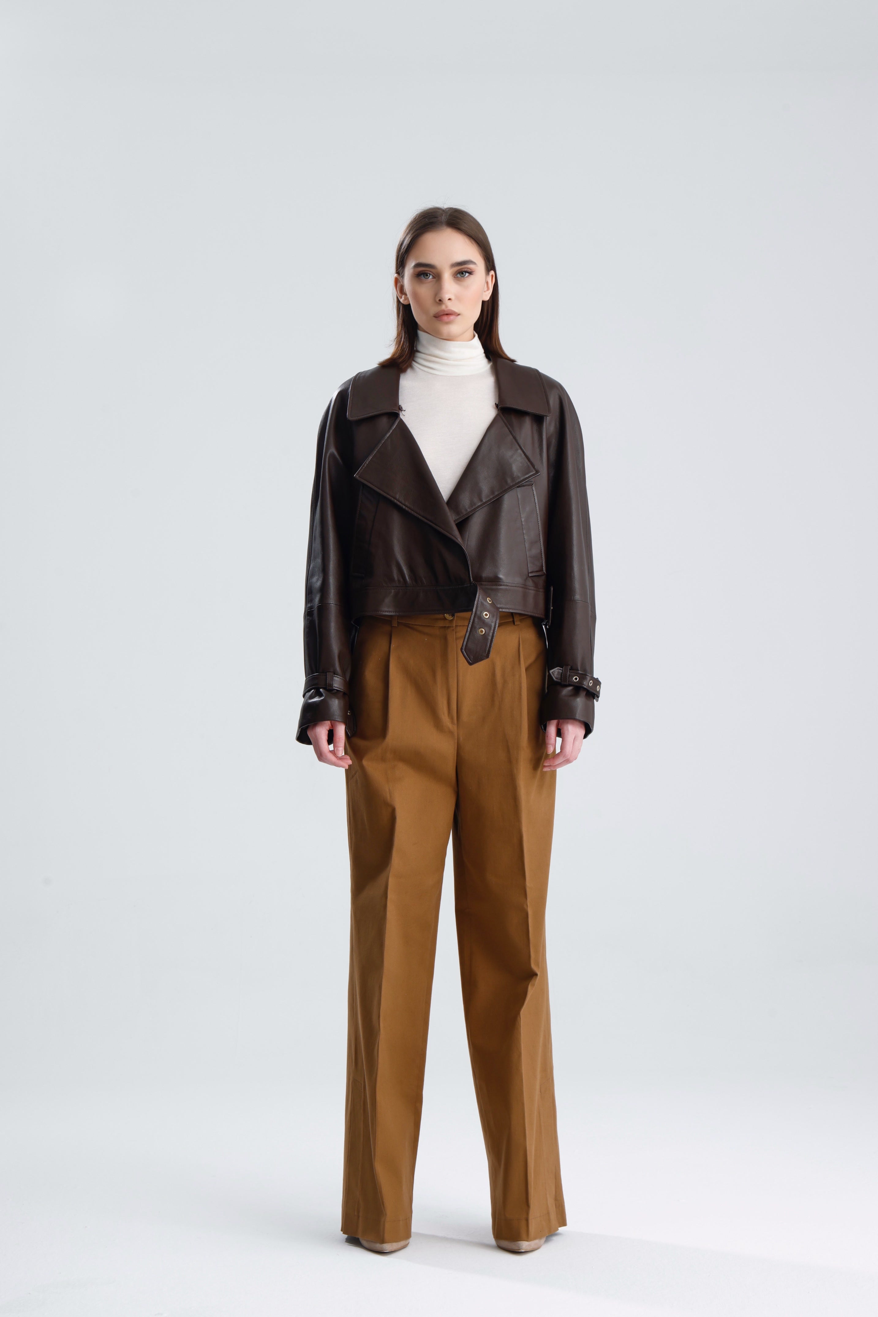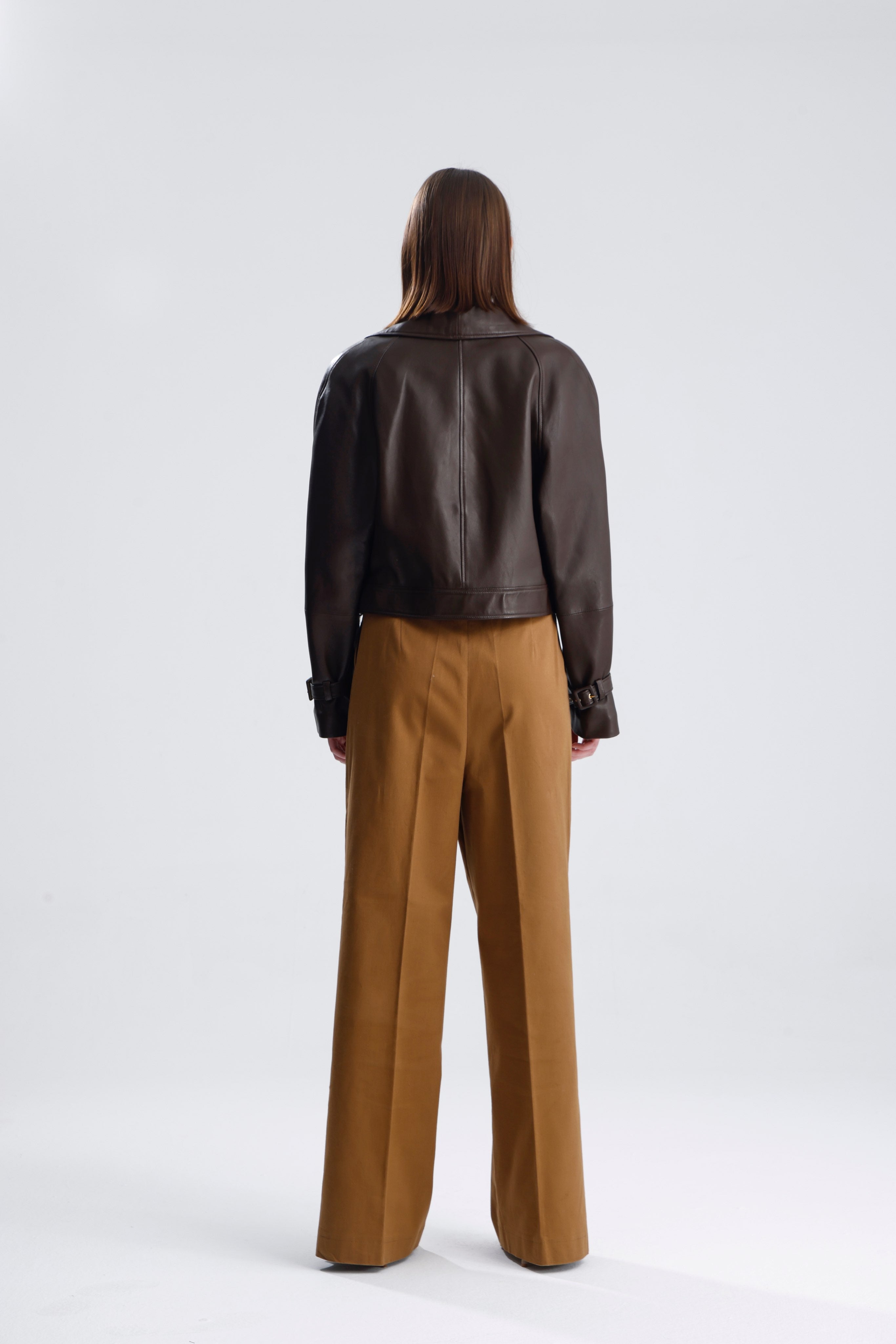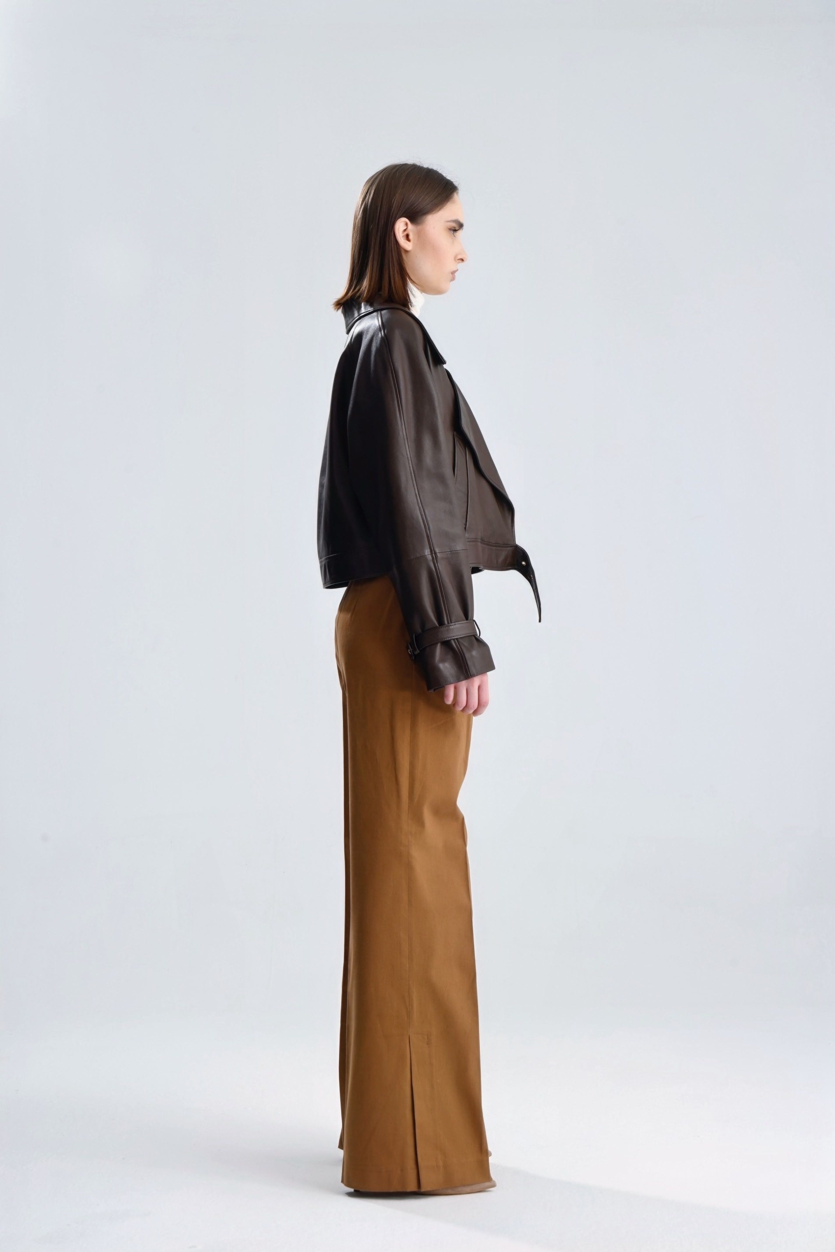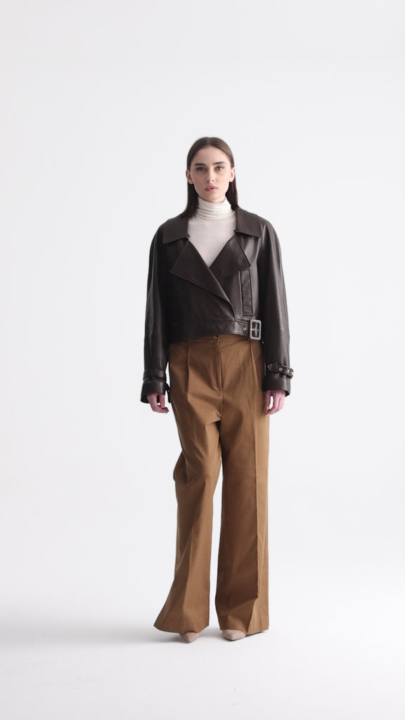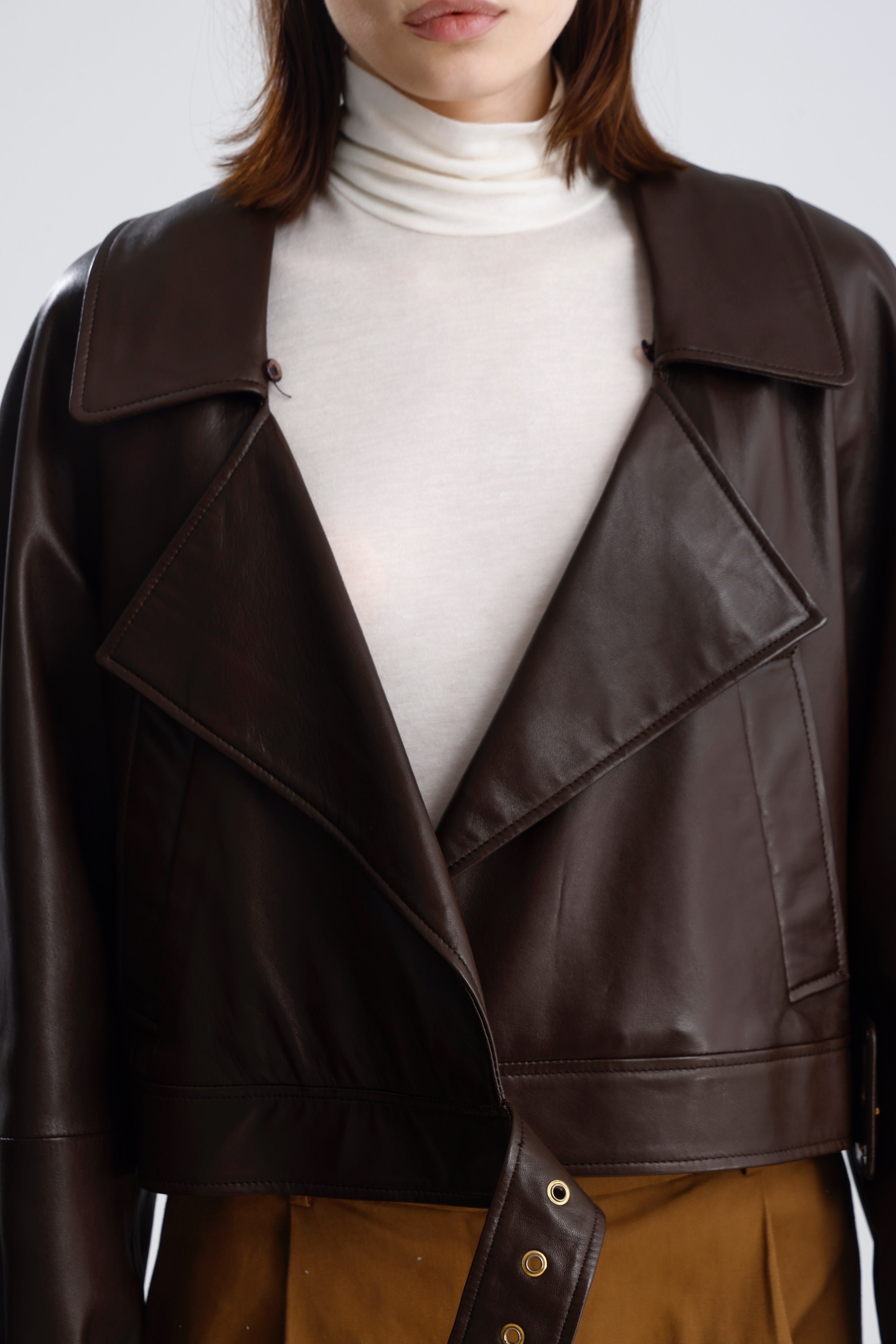 Esme is a forever staple. A classic walnut lamb leather coat with clean tailoring, it is the piece you will reach for season after season to elevate both casual and formal looks.
