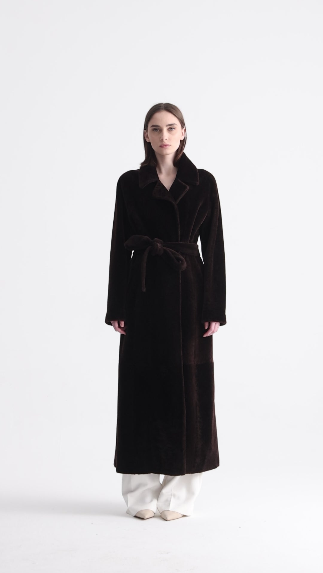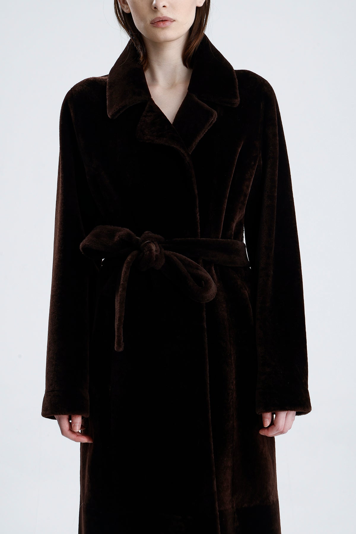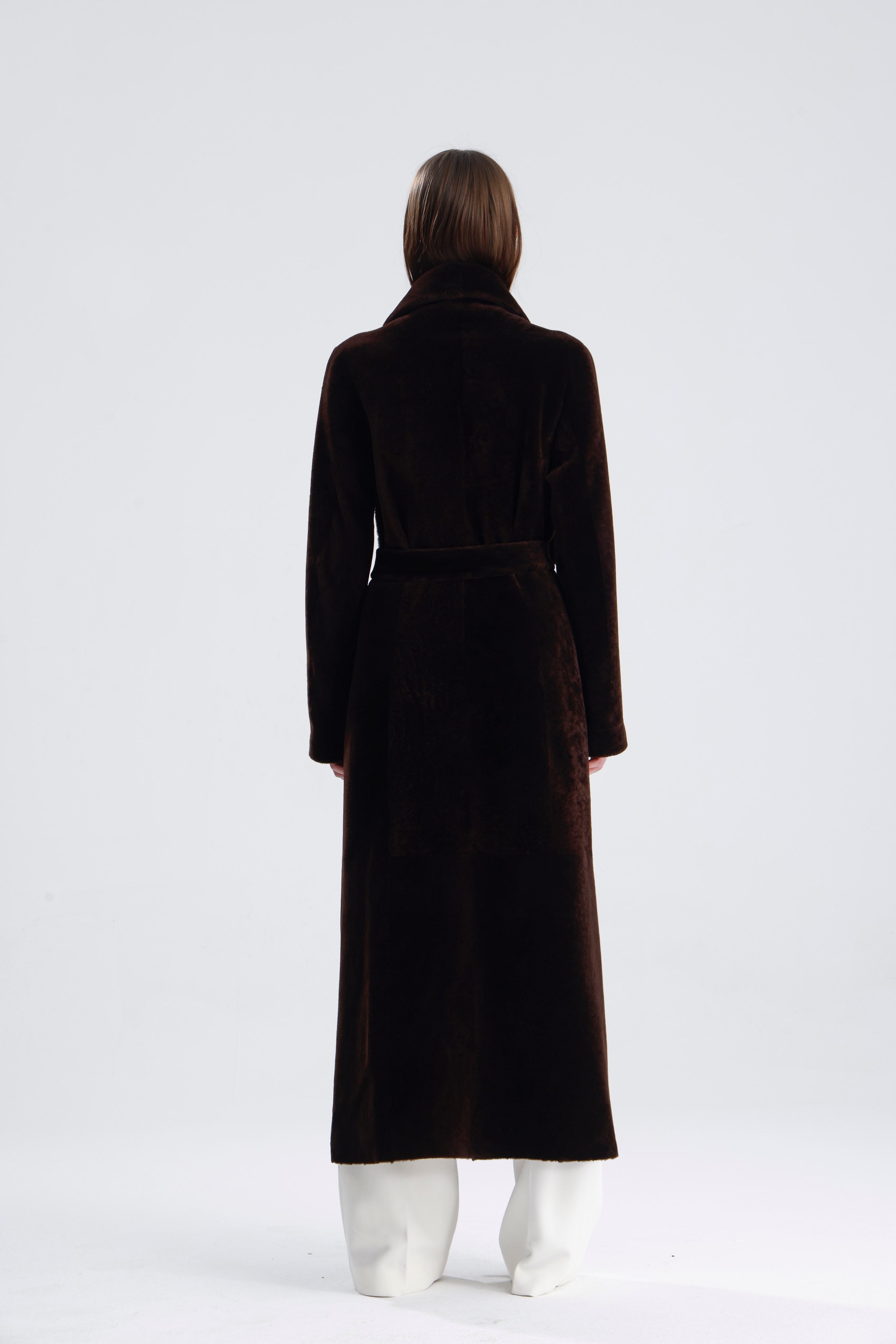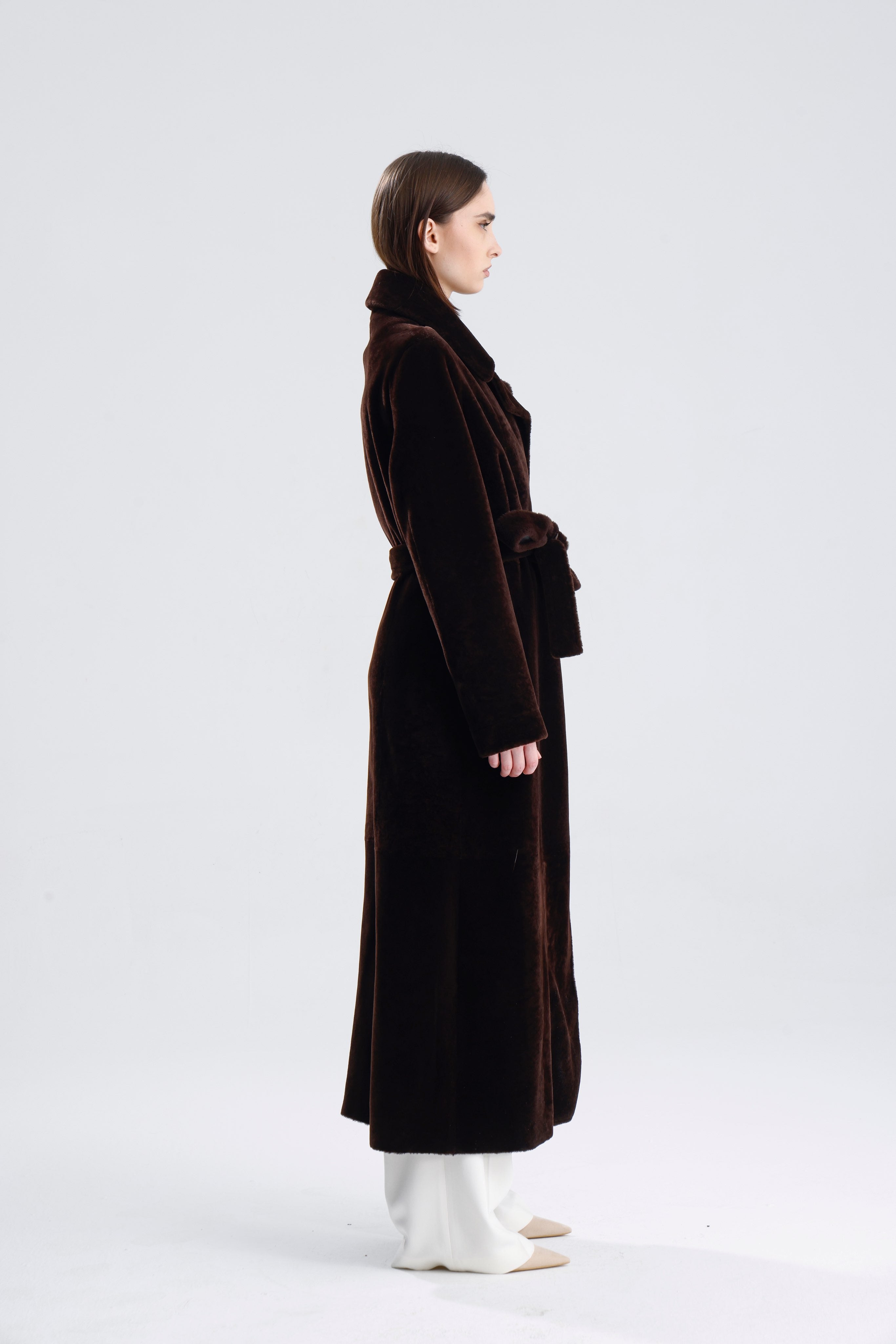 Zelda is effortlessly chic. In truffle merino shearling, this refined coat features a versatile silhouette that transitions seamlessly from day to night.